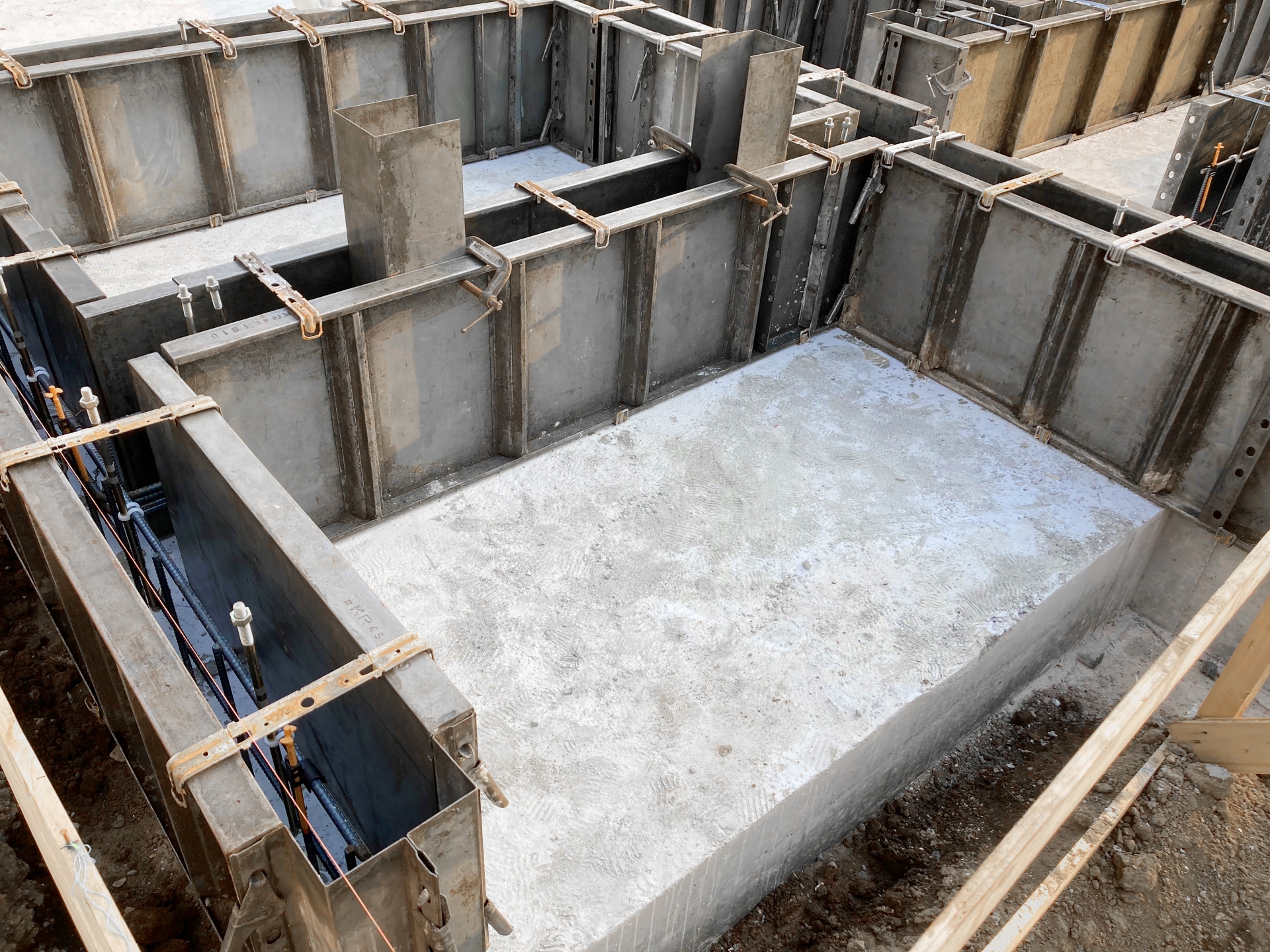- 墨出し・捨てコンクリート打設:地中梁の位置に墨を出し、捨てコンを打設します